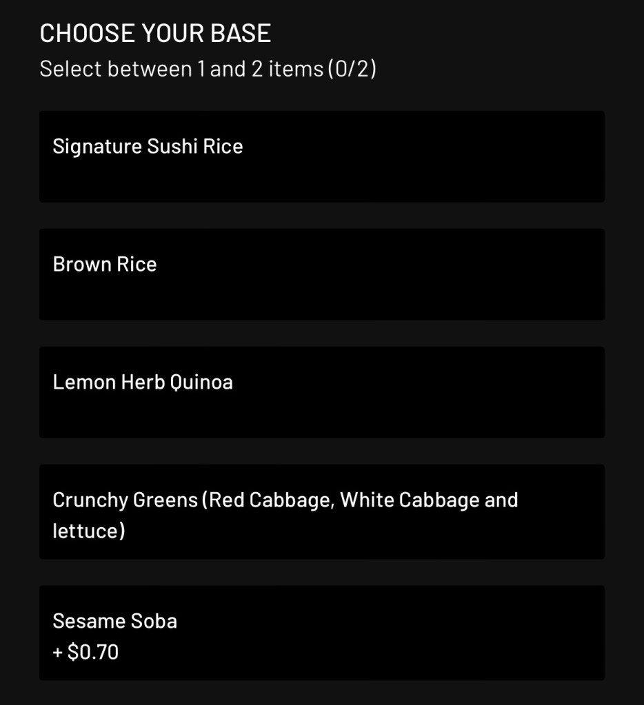 20g of dressing isn’t enough to mix properly into the regular bowl. Instead, I dip my Poke into the sauce rather than stirring it in. I’ve tried both the Sambal Matah and Avocado Miso, and found both to be well-balanced and light. Neither sauce contains oil, making them decent choices if you’re seeking a lower-calorie option.