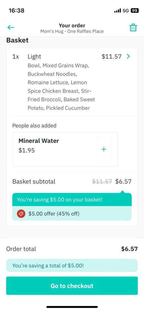 Other information/Hacks: Deliveroo’s self-pickup offer is the best, the light bowl costs $6.57 after discount.