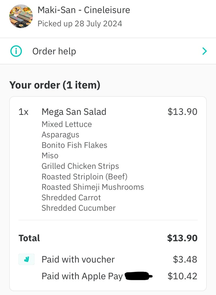 Maki San was where I ended up at 7:30PM on a Sunday night because there just aren’t many salad options at that time. I was surprisingly very satisfied with my bowl. It was refreshingly clean, exactly what I’d anticipate from a Japanese food chain.