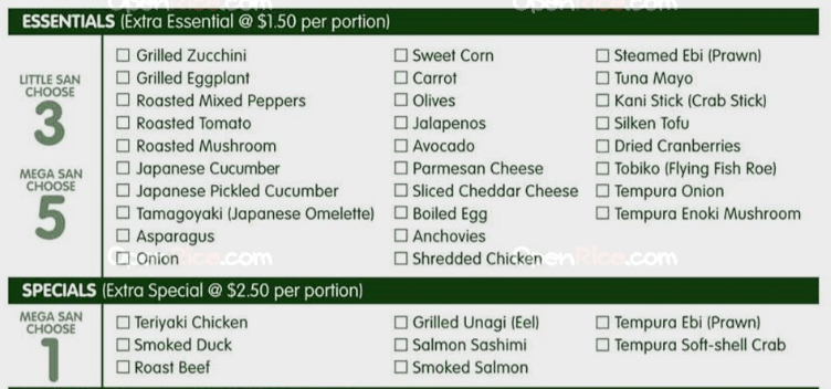 D.I.Y Mega San Salad ($11.10, 1 Base, 5 Essentials, 1 Sprinkle, 1 House Sauce, 1 Special)