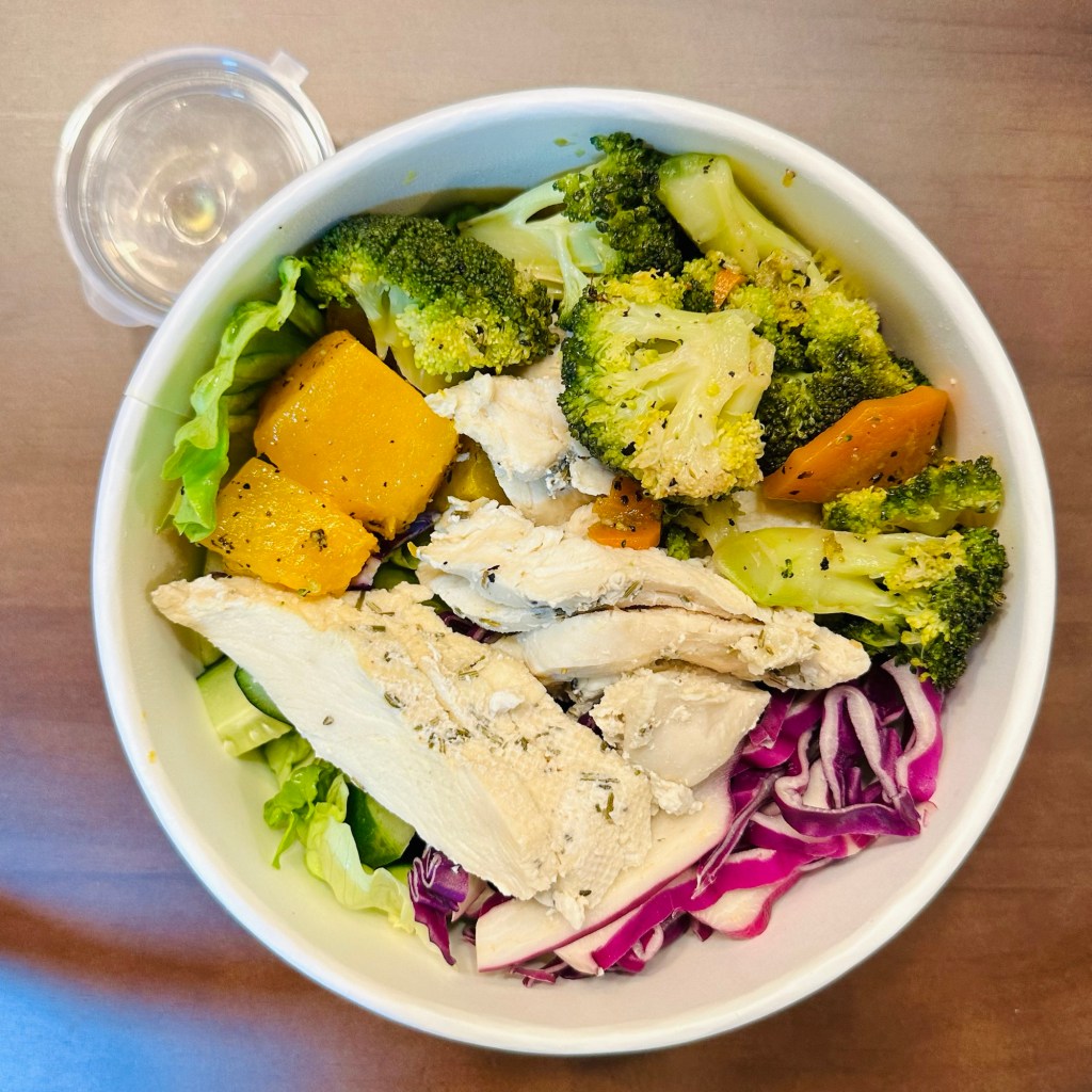 Build Your Own Bowl ($10.30, 1 base, 2 cold toppings, 2 hot toppings, 1 protein, 1 dressing)