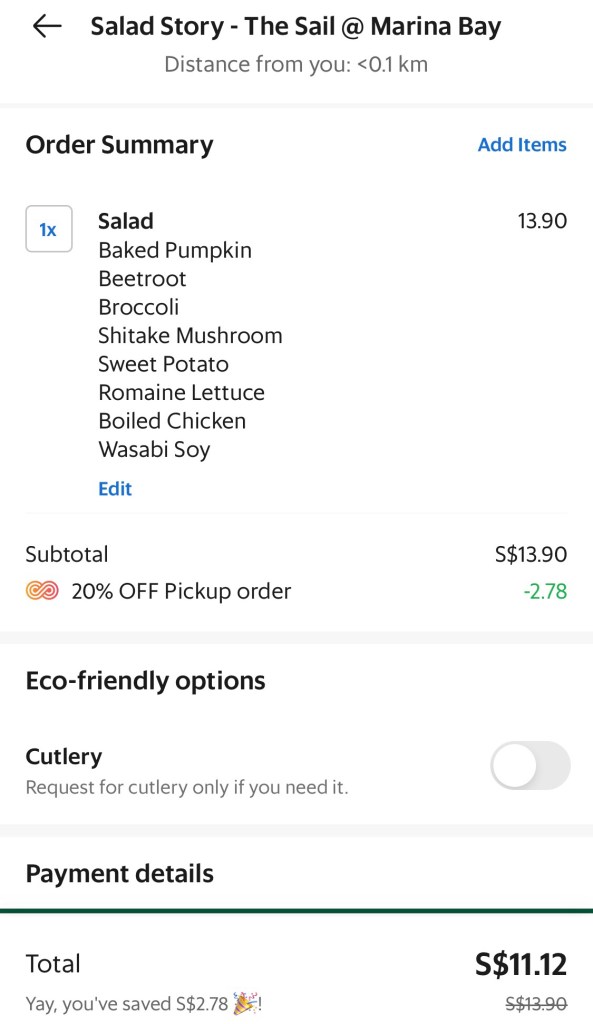 Other information/Hacks: Grab Premium’s self pick-up gives you the best offer, allowing you to purchase your bowl for $11.12 instead of $12.90.