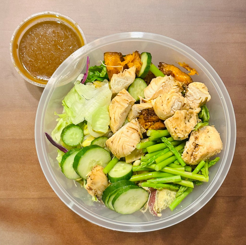 The grilled chicken is a bit on the dry side, but I’ve definitely had worse. Considering the price, I can’t really complain. They also offer a nice selection of proteins, including salmon mayo and smoked duck breast.