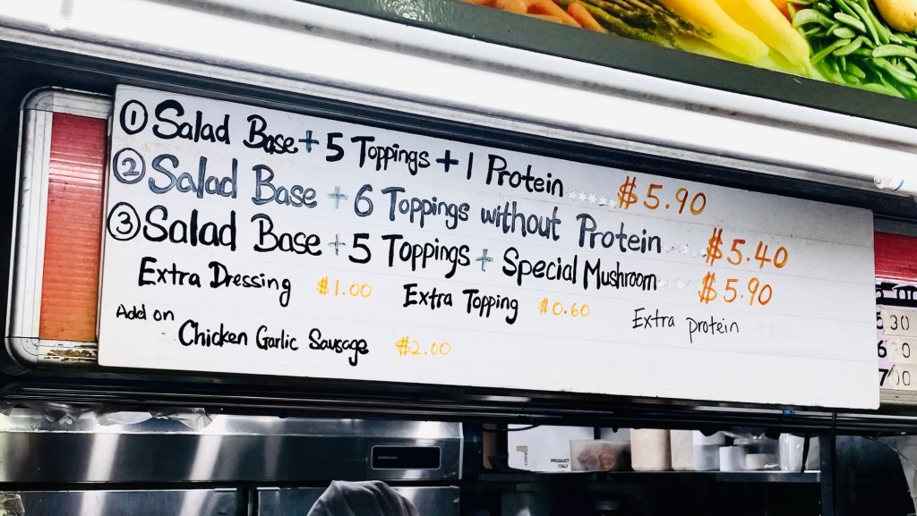 ① Salad ($5.90, Salad Base, 5 toppings, 1 protein)