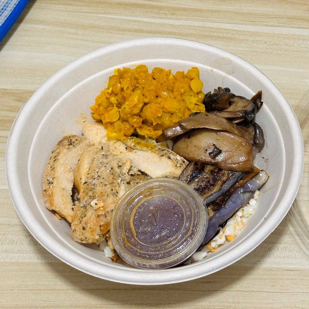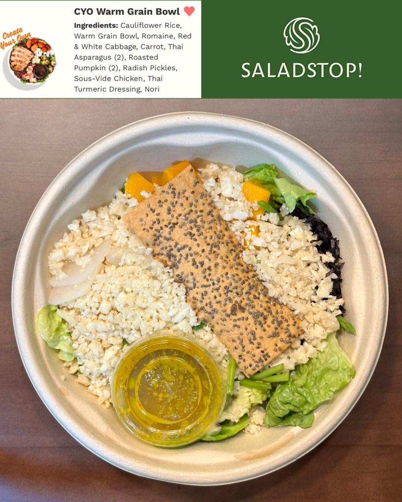 Gain Bowl ($12.90, 1 base, 3 supplements, 2 protein, 1 dressing)