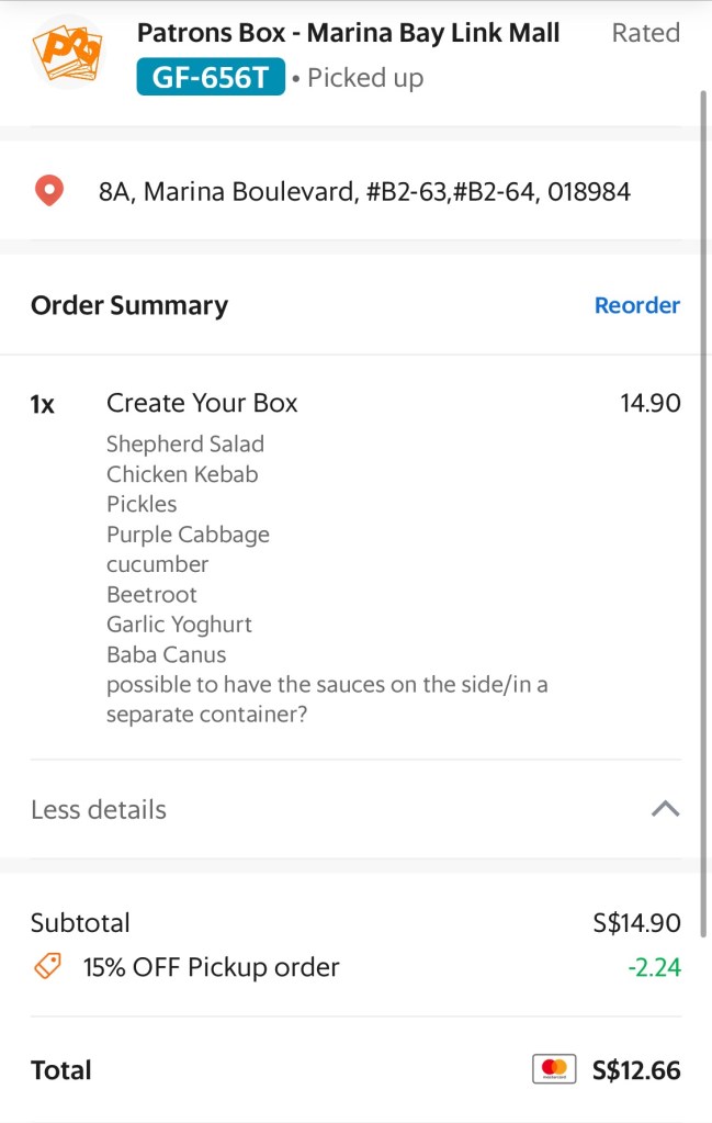 Other information/Hacks: Grab self-pickup gives you the best deal with the 15% off pickup order. (Even more if you have grab premium).